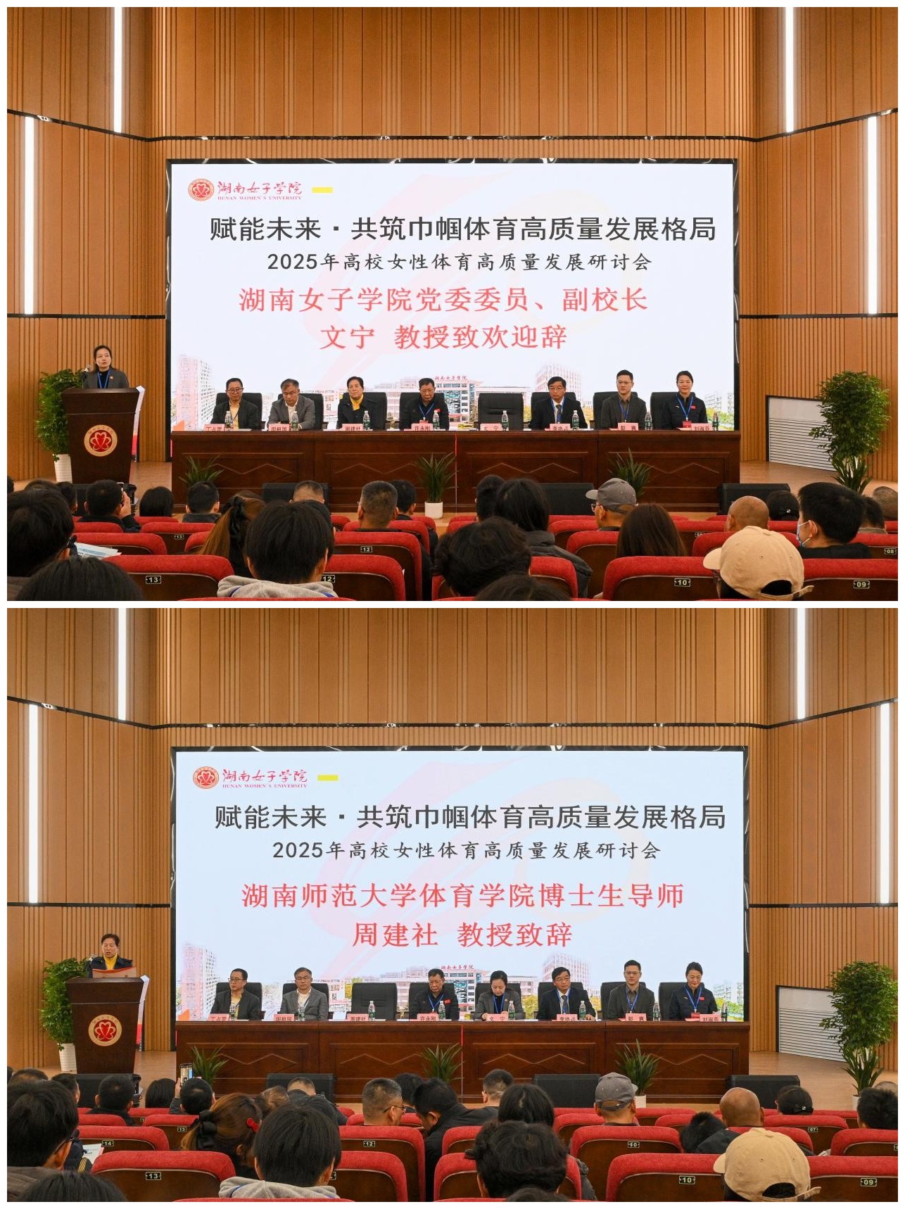 本网讯(体育部 刘泽锋 肖晖妮 )12月20-21日,由我校主办、体育部承办的2025年高校女性体育高质量发展研讨会在我校举行。本次会议以“赋能未来·共筑巾帼体育高质量发展新格局”为主题,邀请来自广州体育学院、湖南大学、湖南师范大学等多名国内知名体育学者共同搭建起体育学科高端学术交流平台。我校党委委员、副校长文宁,科研与学科建设处负责人、体育部负责人及全体专任教师及来自湖南师范大学体育学院、中南林业科技大学体艺学院、湖南女子学院学生代表共160余人参会。