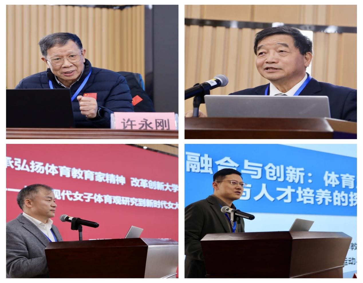 在主旨报告环节,4位知名学者与实务专家分享了精彩见解。广州体育学院原院长、博士生导师许教授以“体教融合”:一个实现中华民族伟大复兴战略的时代命题为题,认为“体教融合”核心在于 “两个结合”:“向内融合”——让体育深度回归教育的本源,“向外链接”——勇敢打破校园的物理与观念围墙;来自湖南师范大学体育学院原院长、博士生导师李艳翎教授做主旨演讲论中国体育产业发展现状与趋势指出群众体育、竞技体育和体育产业发展是当前体育事业发展的三驾马车,体育产业发展是体育强国的重要内容。湖南大学体育学院党委书记、博士生导师田祖国教授以《传承弘扬体育教育家精神,改革创新大学体育课程教学 —— 从近现代女子体育观研究到新时代女大学生体育改革》为主题,为我们搭建了一座连接历史与当下、理论与实践的桥梁,让我们对大学体育课程改革,尤其是女大学生体育教育的发展,有了更为系统、深刻的认知。广州体育学院彭爽教授,体育康养专业带头人为我们系统、全面地介绍了广州体育学院在“体育康养”这一全新专业建设与人才培养方面的探索与实践。不仅让我们看到了一个新兴专业的诞生背景与发展脉络,更让我们深刻感受到体育教育在响应国家战略、服务社会需求方面的主动担当与创新活力。