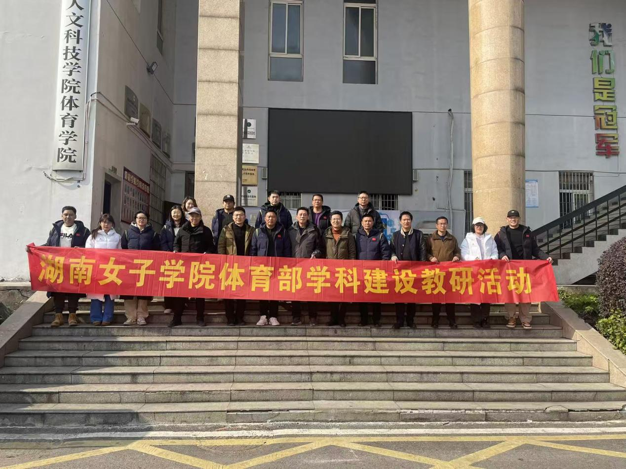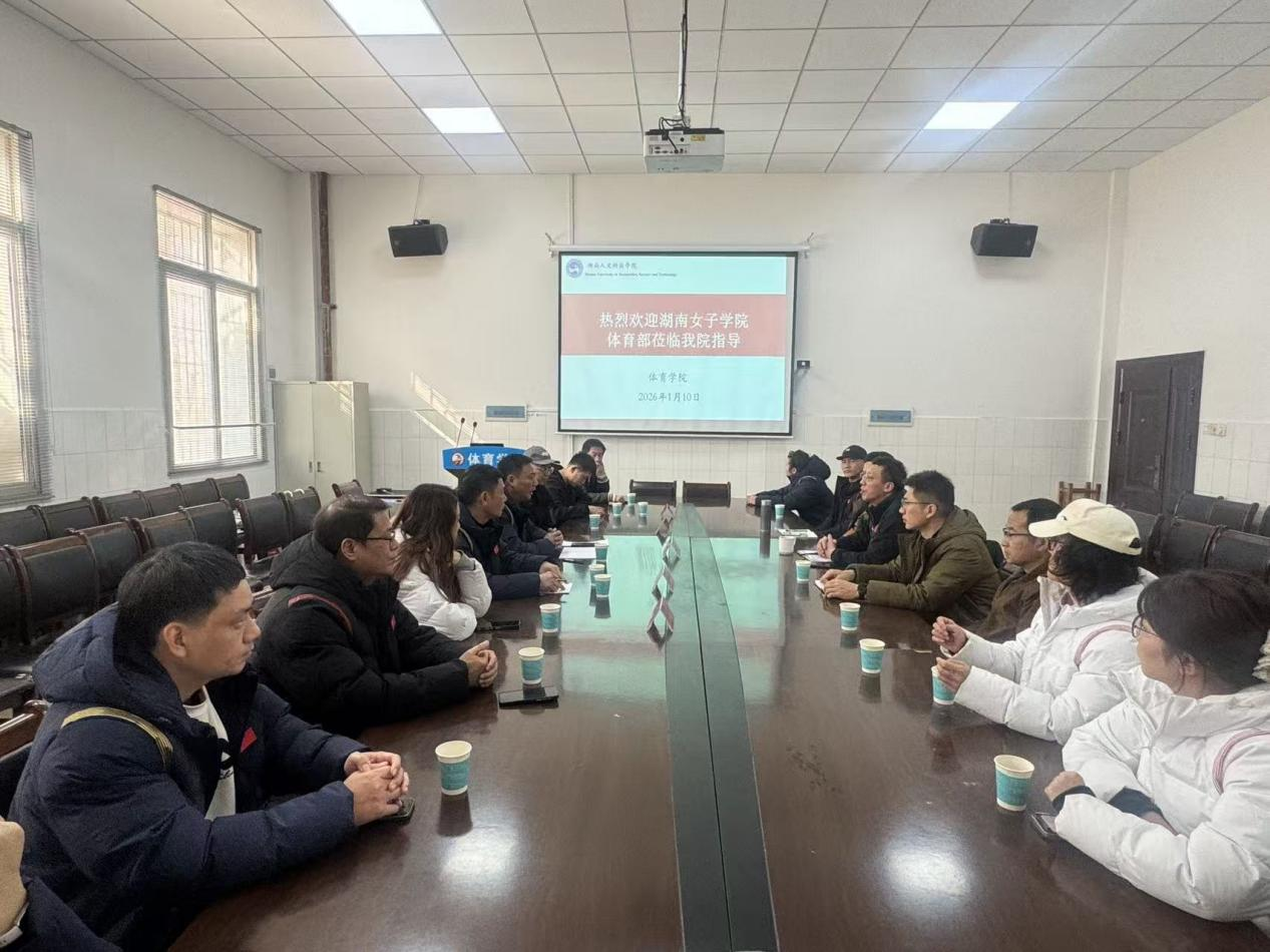 本网讯(体育部 刘泽锋 肖晖妮 )为进一步加强校际合作,借鉴先进经验,推动我校体育学科专业建设与发展,1月10日上午,我部教研室负责人及教师一行14人在体育部王庆云副主任(主持工作)的带领下,赴湖南人文科技学院体育学院开展学科专业建设与申报经验专题交流活动,湖南人文科技学院体育学院党委书记曾黎等学院相关领导及教师代表参加。