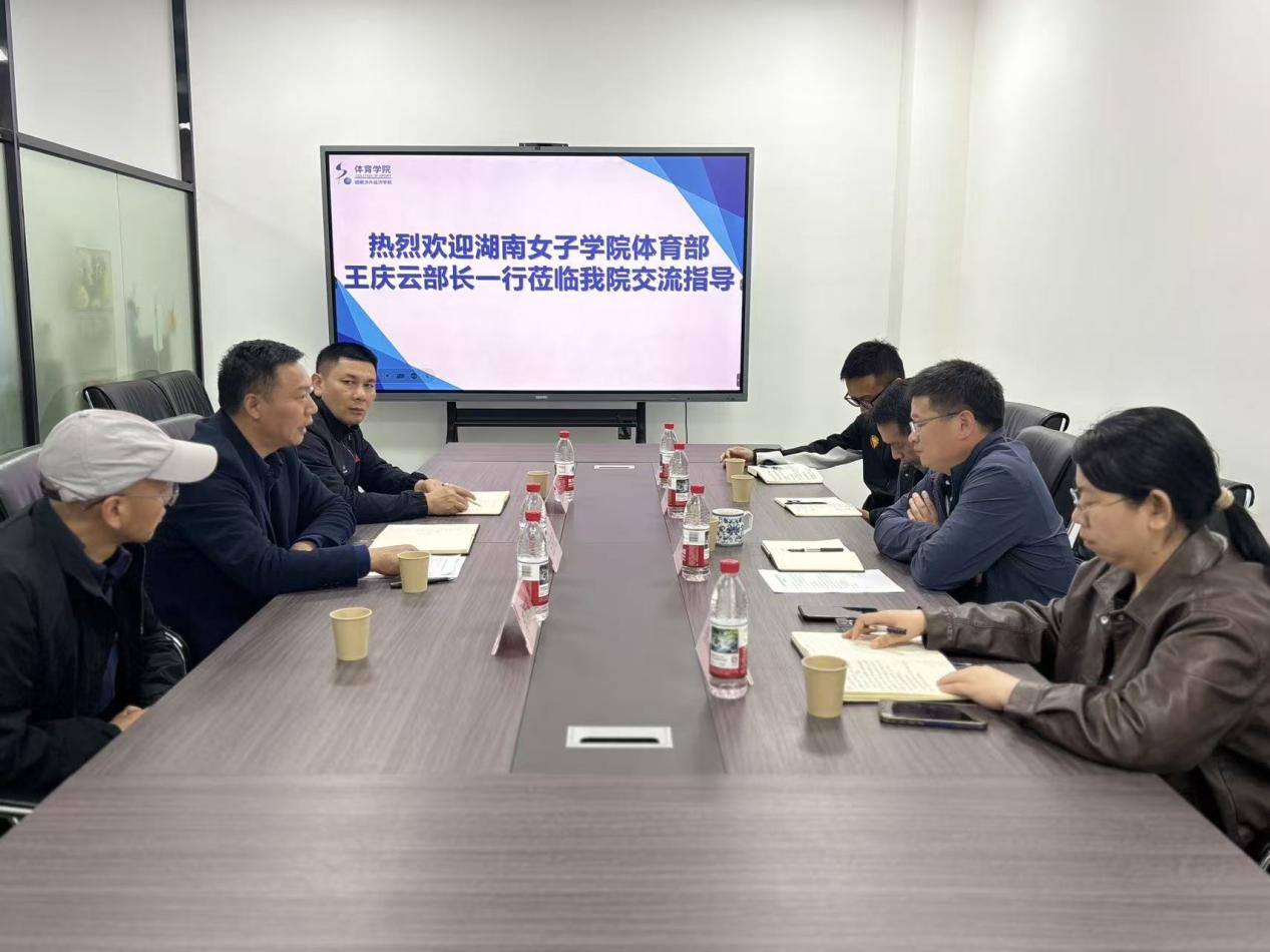 本网讯(体育部 刘泽锋 肖晖妮)为推动体育学科专业建设,加强校际合作与经验互鉴,4月22日下午,体育部负责人王庆云率队一行3人赴湖南涉外经济学院体育学院开展专项调研交流。湖南涉外经济学院体育学院院长谢明及相关领导热情接待并出席座谈会。